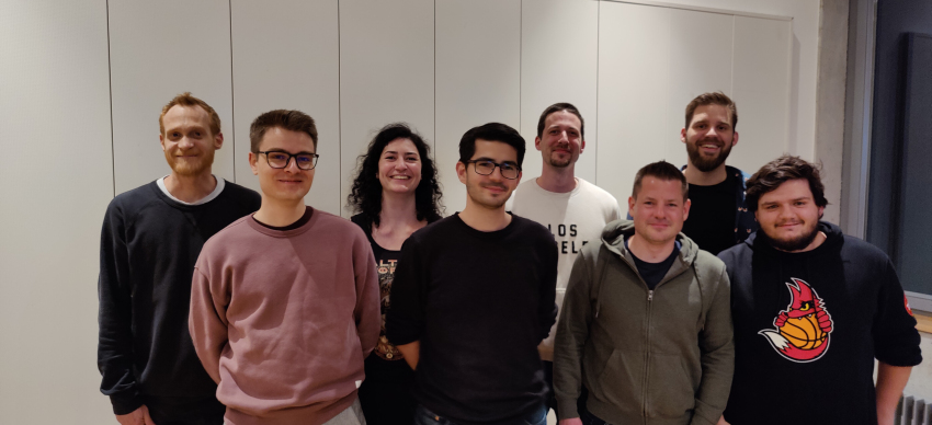 Im Bild: Der Vorstand 2022 v.l.n.r.: Philippe Lehmann (Public Relations), Sven Bucher (Kasse), Daniela Erni (Events), Ensar Can (Präsident), Björn Böni (Sponsoring), Thomas Hauser (Handball), Tim Schirner (Vize-Präsident), Alexander de Simone (Basketball)
